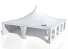 Самый большой размерный вариант шатра данного типа. Шатер может быть реализован в отапливаемом варианте. Тент ПВХ высокой плотности с армированием защищен он гнили и плесени специальной пропиткой. Все варианты используемых нами тентов не поддерживают горение.