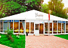 Три размерных варианта рассчитанных на 80, 128 и 186 человек. Ширина одной грани шатра - 5 метров. Данное решение хорошо подходит для организации торговли, кафе и вспомогательного строения в местах где невозможно или нецелесообразно возведение капитальной постройки.